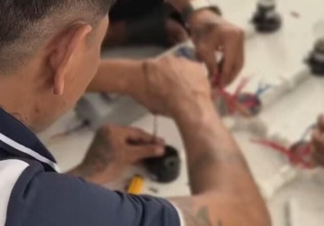 KORANDETAK.COM-Meningkatkan kualitas kemandirian dan ilmu pengetahuan tentang instalasi listrik sederhana, Lembaga Pemasyarakatan Kelas IIB Bitung menggelar Pelatihan instalasi listrik sederhana bagi WBP di Aula Lapas Kelas IIB Bitung, Kamis 20 November 2025.