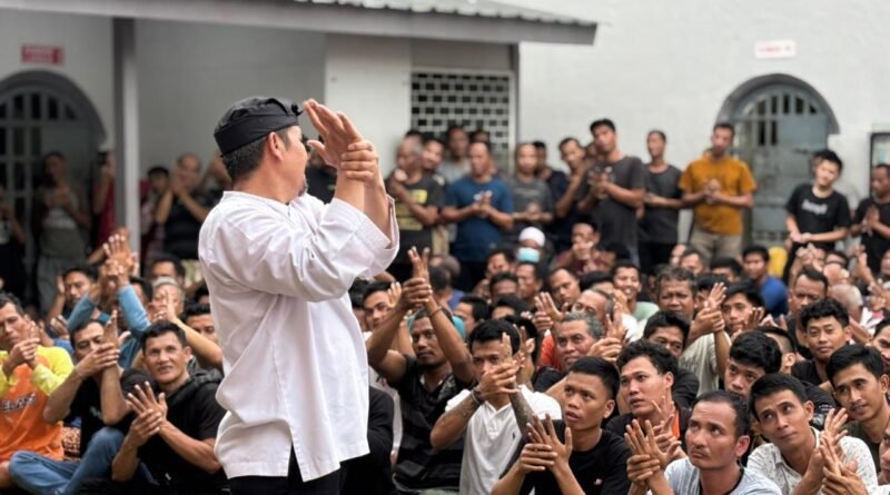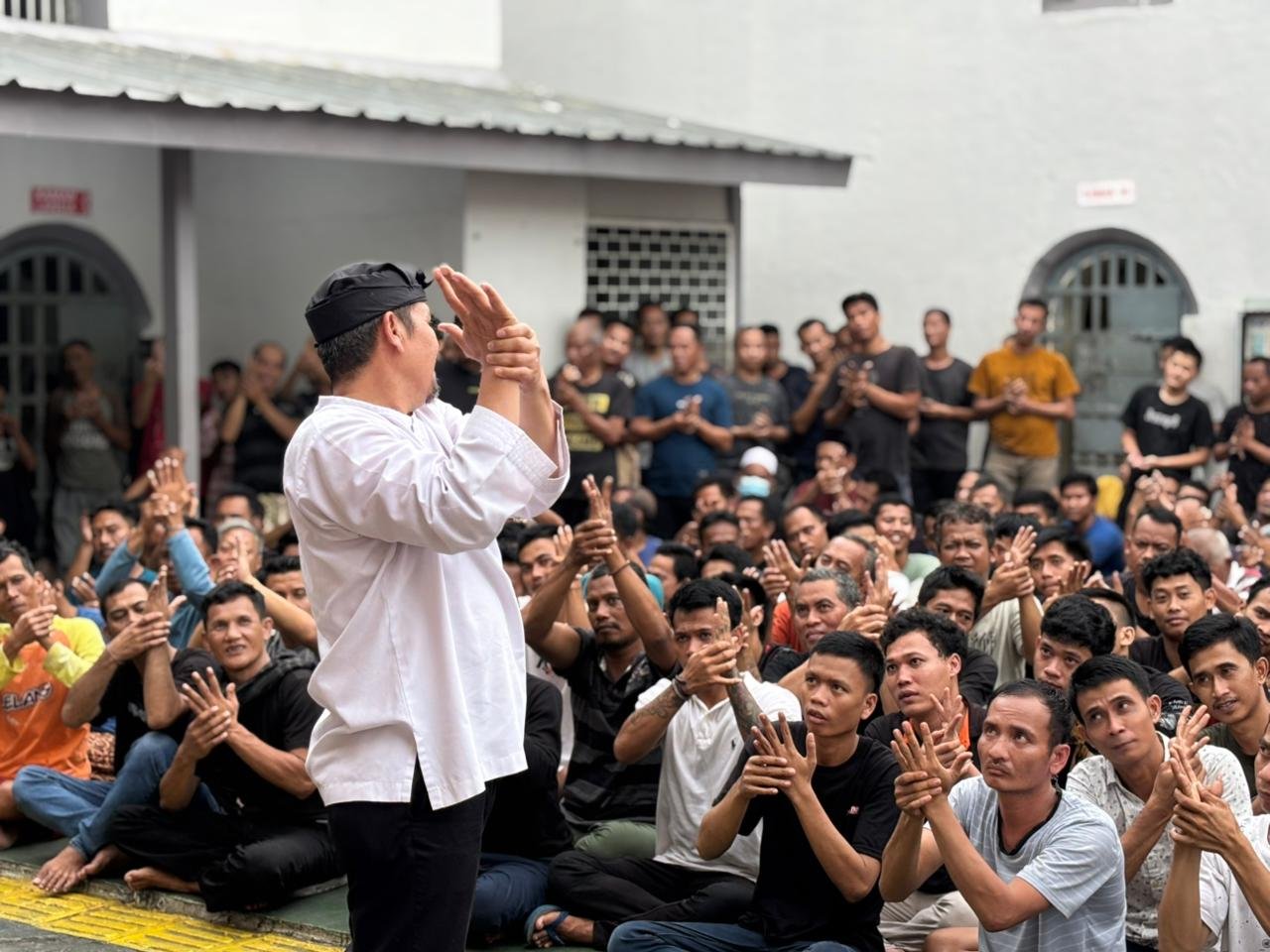 Usai berdialog, Kakanwil turut memimpin langsung sesi terapi dan latihan pernapasan sehat, mengajak warga binaan melakukan teknik relaksasi sederhana. Latihan ini bertujuan membantu mereka mengelola stres, menenangkan pikiran, serta menjaga keseimbangan tubuh dan mental selama menjalani masa pembinaan.