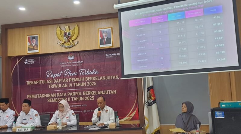 PURWOKERTO – Lembaga Pemasyarakatan Kelas IIA Purwokerto turut serta dalam Rapat Pleno Terbuka Rekapitulasi Daftar Pemilih Berkelanjutan (DPB) Triwulan IV serta Pemutakhiran Data Partai Politik Semester II Tahun 2025 yang diselenggarakan oleh KPU Kabupaten Banyumas pada Senin (8/12). Kegiatan ini merupakan bagian penting dalam upaya memastikan proses demokrasi berjalan dengan baik dan akurat sekaligus menjadi ruang koordinasi antara penyelenggara pemilu dan lintas pihak terkait.