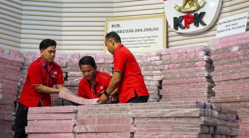 Komisi Pemberantasan Korupsi (KPK) melakukan serah terima barang rampasan negara kepada PT Taspen (Persero) berupa uang tunai sejumlah Rp883 miliar