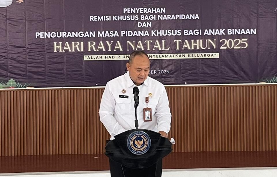 Pelaksanaan Penyerahan Remisi Khusus Hari Raya Natal Tahun 2025 kepada 19 Warga Binaan yang beragama Kristen diikuti oleh Kalapas, Jajaran Pejabat Manajerial dan Warga Binaan Pemasyarakatan dengan turut dihadiri oleh Direktur Pembimbingan Kemasyarakatan, Tim Monev dari Ditjen Pemasyarakatan dan Kantor Wilayah Ditjen Pemasyarakatan Banten.