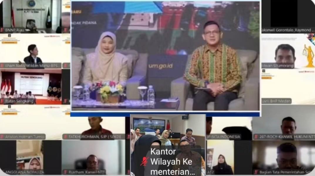 Kantor Wilayah Kementerian Hukum Maluku Utara mengikuti Webinar bertema “KUHP Baru Semangat Baru Untuk Indonesia: Strategi Pengaturan Tindak Pidana Dalam Peraturan Daerah” yang diselenggarakan oleh Kanwil Kemenkum Riau secara daring melalui Zoom Meeting dan Youtube, Kamis (20/11).
