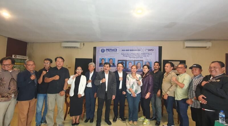 Untuk mencapai sasaran menganalisis pasal-pasal KUHAP, FGD yang diselenggarakan PERADI Dewan Pimpinan Cabang Tangerang bekerja sama dengan SMSI Pusat mengangkat tema “Penguatan Due Process of Law dan Perlindungan HAM”.