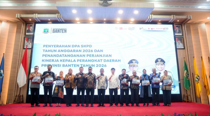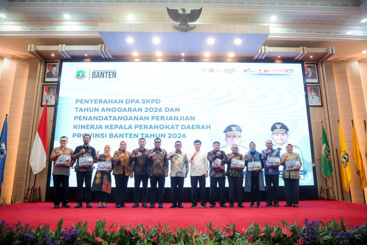 Gubernur Banten Andra Soni, secara resmi menyerahkan Dokumen Pelaksanaan Anggaran (DPA) Satuan Kerja Perangkat Daerah (SKPD) Tahun Anggaran 2026 sekaligus menyaksikan penandatanganan Perjanjian Kinerja Kepala Perangkat Daerah di Lingkungan Pemerintah Provinsi Banten.