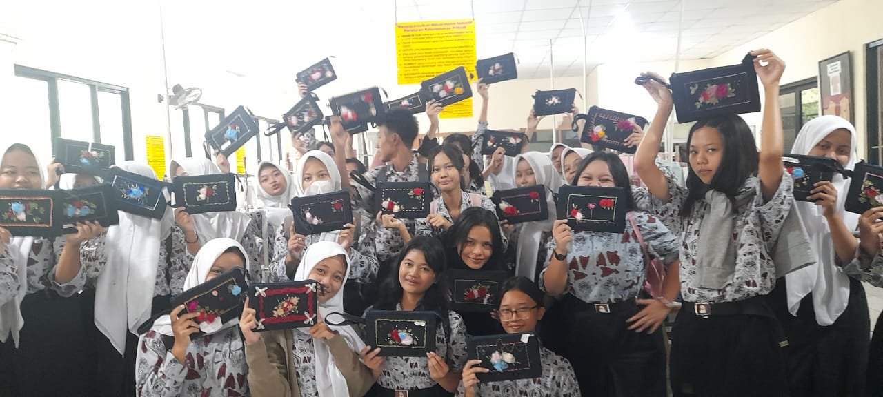 Hasil Sulam Pita Diolah Menjadi Pouch dan Diserahkan Kembali ke SMKN 3 Tangerang