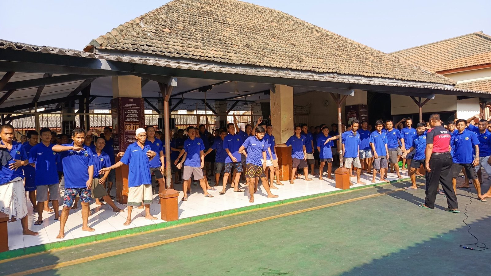 Pasuruan – Rutan Kelas IIB Bangil kembali menggelar kegiatan Senam Sehat Rutin bagi Warga Binaan Pemasyarakatan (WBP) yang dilaksanakan di Aula Blok Hunian. Kegiatan ini dilaksanakan pada hari Sabtu (26/07), dengan menghadirkan instruktur senam profesional dari luar untuk memandu jalannya senam.