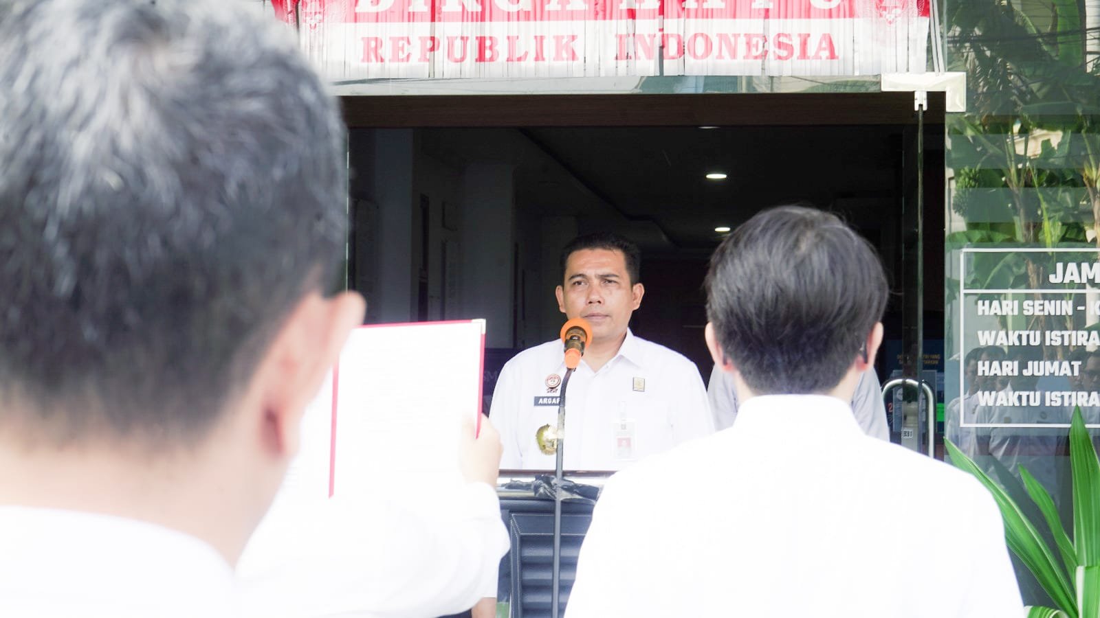 “Mari jadikan Pancasila sebagai pedoman dalam kehidupan bernegara. Sebagai ASN, kita patut menjadikan Pancasila sebagai perekat bangsa menuju Indonesia Raya, Indonesia Emas 2045,” ujar Argap Situngkir di hadapan para peserta upacara.