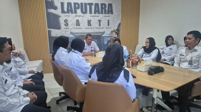 Tangerang – Kepala Kantor Wilayah Direktorat Jenderal Pemasyarakatn Banten, Ali Syeh Banna, memberikan pengarahan kepada jajaran Lapas Perempuan Kelas IIA Tangerang. Kegiatan ini diikuti oleh PLH Kalapas Perempuan Kelas IIA Tangerang, Salis Farida, bersama pejabat struktural.