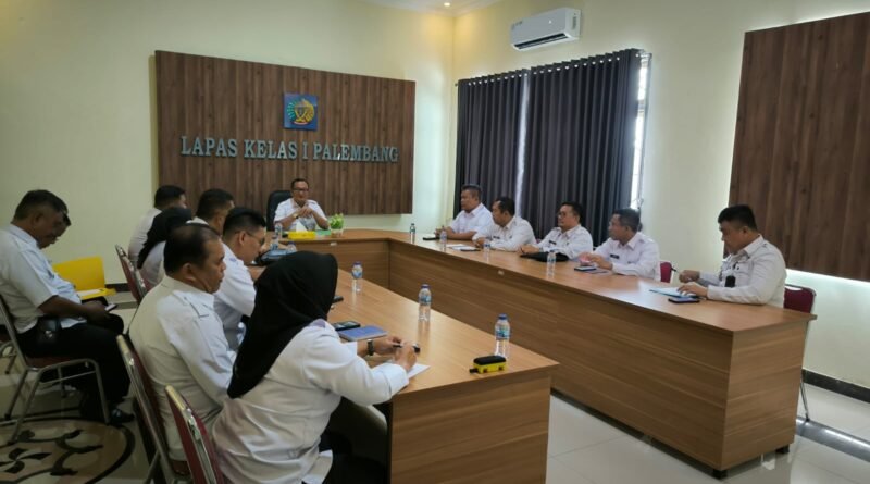 PALEMBANG – Kalapas Kelas I Palembang Veri Johannes melaksanakan rapat peningkatan kewaspadaan selama bulan suci ramadhan dan hari raya idul fitri 1446 H / 2025 M bersama jajaran pejabat struktural Lapas kelas I Palembang.