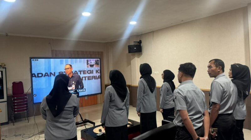 Ternate – Kantor Wilayah Kementerian Hukum Maluku Utara melalui Divisi Peraturan Perundang-Undangan dan Pembinaan Hukum (P3H) mengikuti kegiatan Sosialisasi Pedoman Teknis Kegiatan Badan Strategi Kebijakan Hukum (BSK Hukum) di Wilayah Tahun 2026 yang digelar di Aula Gamala Lantai I Kanwil Kemenkum Maluku Utara, Selasa (10/2). Kegiatan tersebut diikuti oleh seluruh Kantor Wilayah Kementerian Hukum se-Indonesia beserta jajaran, khususnya Divisi P3H dan para analis kebijakan, serta dihadiri langsung oleh Kepala BSK Hukum RI, Andry Indrady, bersama jajaran BSK Hukum sebagai pelaksana sekaligus narasumber.
