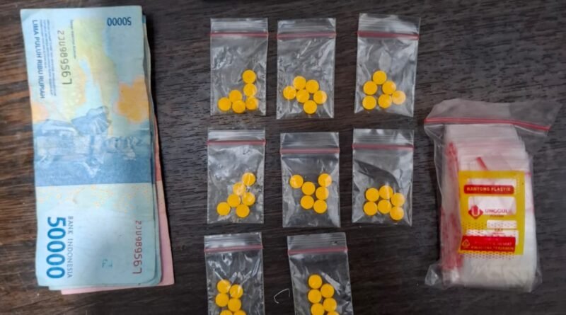 Dari hasil pemeriksaan dan penggeledahan di tempat kejadian, petugas menemukan sejumlah obat-obatan keras yang diduga diperjualbelikan tanpa izin, di antaranya Tramadol sebanyak 50 butir dan Heximer sebanyak 48 butir, serta uang tunai hasil penjualan sebesar Rp250.000. Selain itu, turut diamankan 1 (satu) buah KTP dan 1 (satu) unit handphone merk VIVO warna biru.
