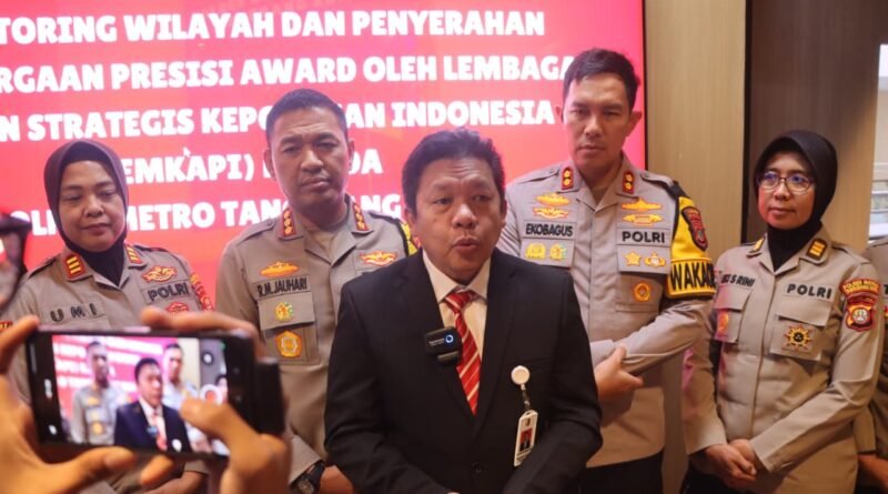 KORANDETAK.COM-Kepolisian Resor Metro Tangerang Kota menerima kunjungan silaturahmi sekaligus penganugerahan Presisi Award dari Lembaga Kajian Strategis Kepolisian Indonesia (LEMKAPI). Penghargaan tersebut diserahkan langsung oleh Direktur Eksekutif LEMKAPI DR Edi Saputra Hasibuan, SH, MH kepada Kapolres Metro Tangerang Kota Kombes Pol. Dr Raden Muhammad Jauhari, SH, SIK, MSI, pada Rabu (19/11/2025) di Rupatama Lantai 6 Gedung Presisi Polres Metro Tangerang Kota.