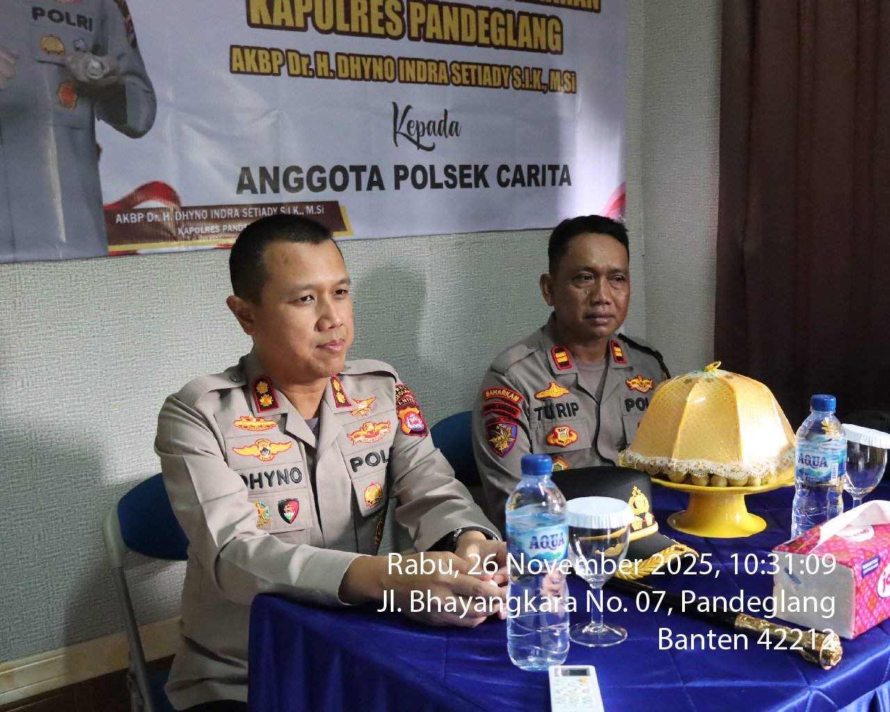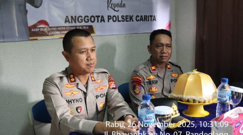 Kapolres Pandeglang AKBP Dr. Dhyno Indra Setyadi memberikan arahan langsung kepada personel Polsek Carita beserta keluarga terkait larangan bergaya hidup hedonis dan larangan ikut dalam kelompok atau kegiatan yang dapat memunculkan persepsi hedonisme. Kegiatan sosialisasi tersebut digelar di Mapolsek Carita, Rabu (26/11).
