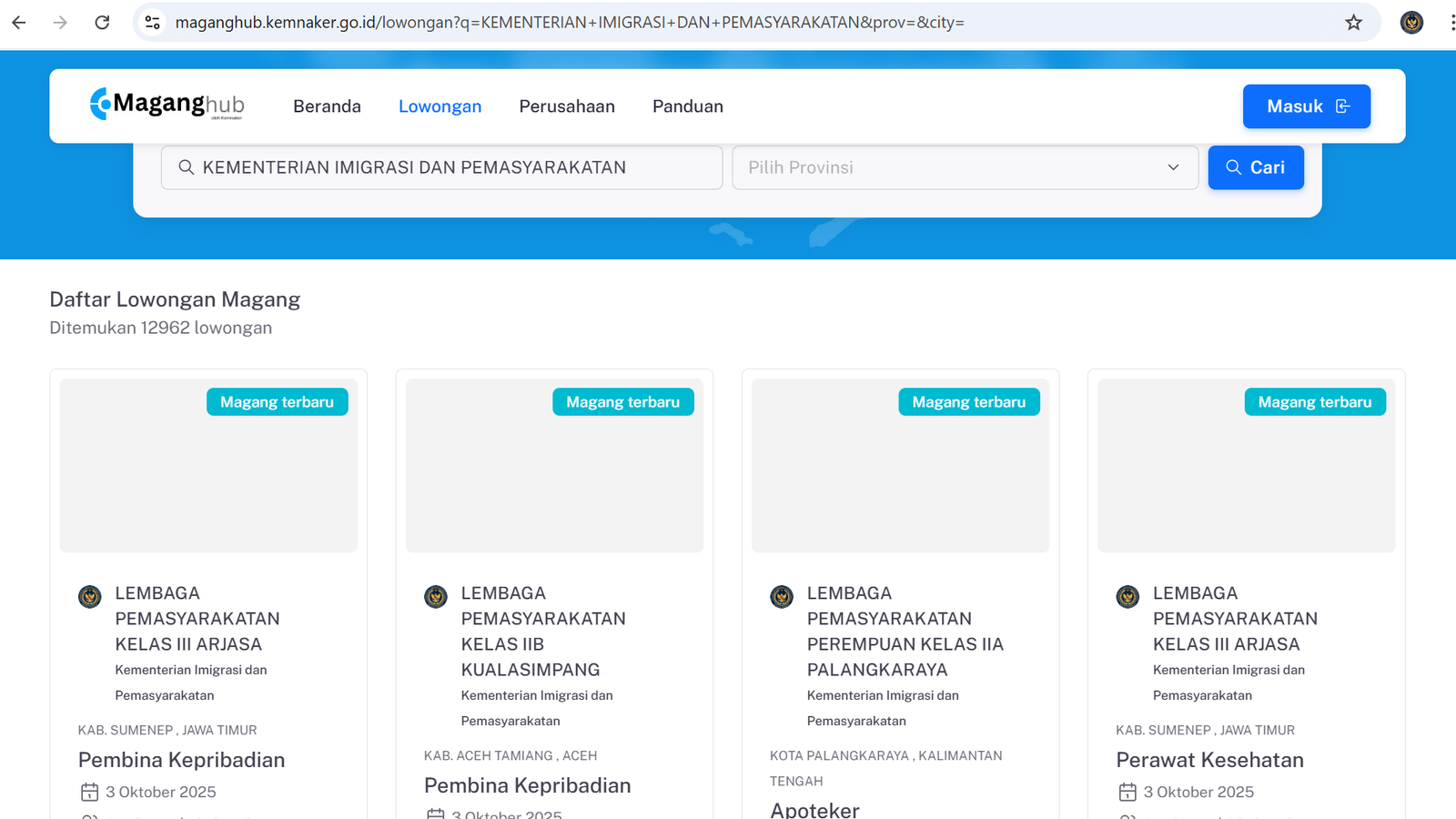 Kementerian Imigrasi dan Pemasyarakatan (Kemenimipas) telah membuka kesempatan magang bagi 39.496 fresh graduate yang ingin mengasah kompetensi dan memperoleh pengalaman kerja di lingkungan pemerintahan. Program ini menjadi bagian dari upaya Kemenimipas untuk mencetak generasi muda yang berintegritas, profesional, dan siap berkontribusi bagi pelayanan publik.