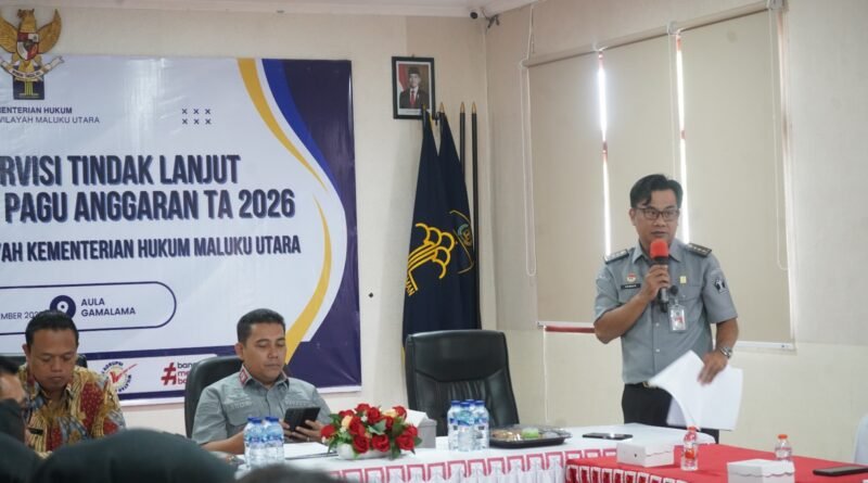 Ternate – Kantor Wilayah (Kanwil) Kementerian Hukum (Kemenkum) Maluku Utara (Malut) menggelar kegiatan Supervisi Tindak Lanjut Penelitian RKA-K/L Pagu Anggaran Tahun Anggaran 2026 di Aula Gamalama Lantai I Kanwil, Selasa (23/9).