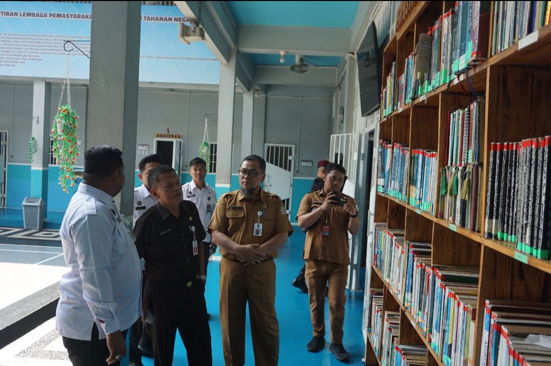 Rombongan mengamati Perpustakaan Lapas yang berperan penting sebagai pusat belajar dan membaca, mendorong WBP untuk membangun kebiasaan positif di tengah masa pembinaan.