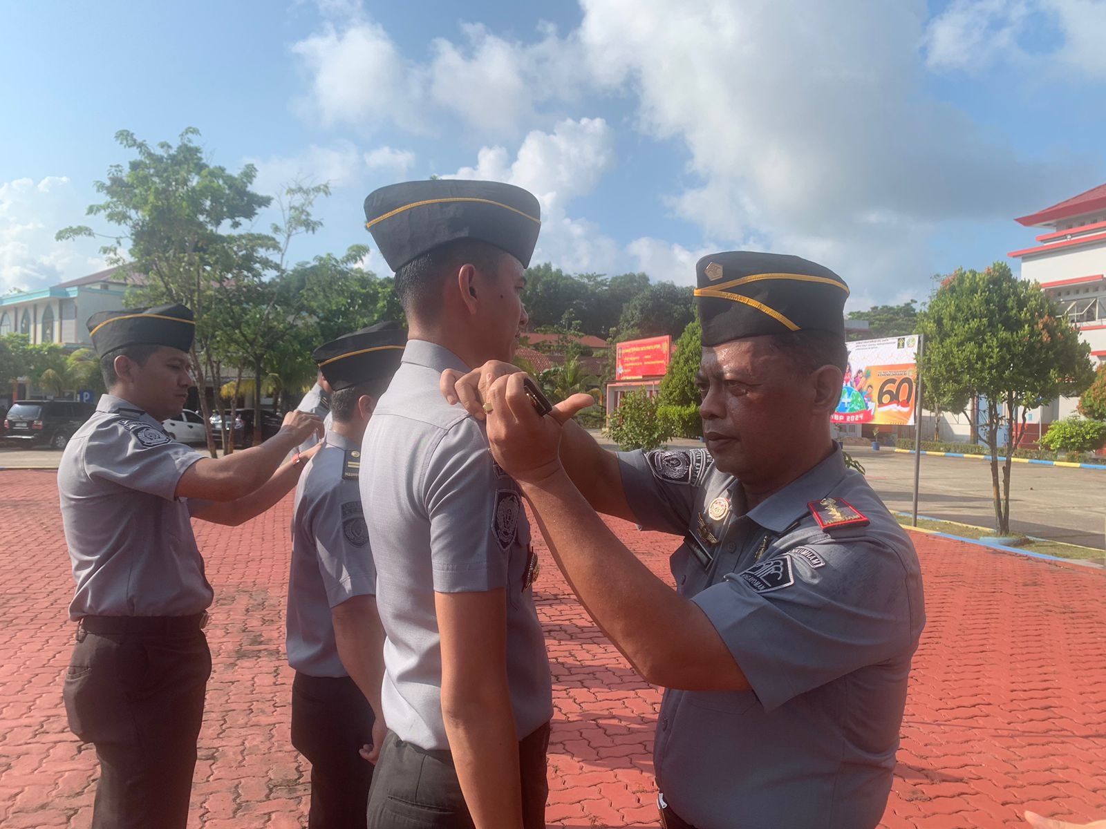 BATAM – Lapas Batam menyelenggarakan apel pagi sekaligus Penyematan Tanda Kenaikan Pangkat Golongan II dan III kepada petugas Lapas Batam, Senin (22/4). Kegiatan dilaksanakan di lapangan depan Lapas Batam, adapun petugas yang disematkan adalah sebanyak 7 Orang.