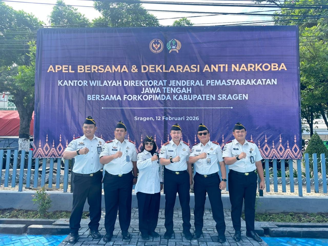 Sragen 12 Februari 2026 – Kantor Wilayah Direktorat Jenderal Pemasyarakatan Jawa Tengah bersama Forum Koordinasi Pimpinan Daerah (Forkopimda) Kabupaten Sragen menggelar Apel dan Deklarasi Anti Narkoba sebagai bentuk komitmen bersama dalam memerangi peredaran dan penyalahgunaan narkotika. Kegiatan yang dilaksanakan dengan penuh khidmat tersebut diikuti oleh jajaran pemasyarakatan, aparat penegak hukum, serta unsur pemerintah daerah.