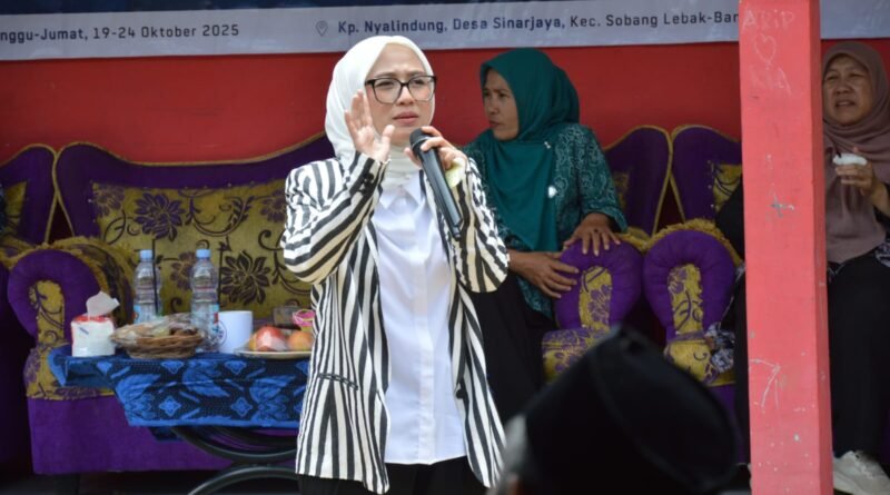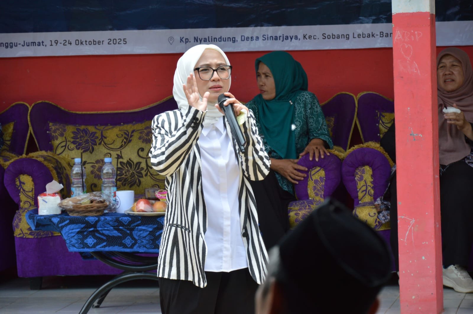 KORANDETAK.COM-Ketua Tim Penggerak Pemberdayaan dan Kesejahteraan Keluarga (TP PKK) Kabupaten Lebak, Belia Hasbi Jayabaya, mengunjungi kegiatan GEMBIRA (Gerakan Mahasiswa Berbakti Kepada Masyarakat) yang dilaksanakan di *Kampung Nyalindung, Desa Sinarjaya, Kecamatan Sobang* pada Kamis (23/10/2025).