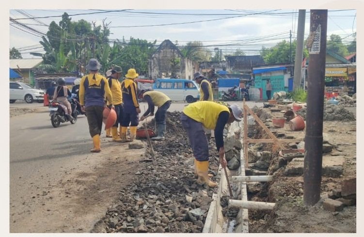 Dalam program simpang sebidang Kaujon, dilakukan pembangunan saluran air dan pelebaran jalan, terlihat dalam gambar.