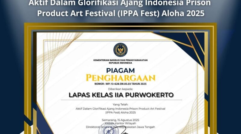 3. Penghargaan atas Keaktifan dalam Glorifikasi Ajang Indonesia Prison Product Art Festival (IPPA Fest) Aloha 2025.
