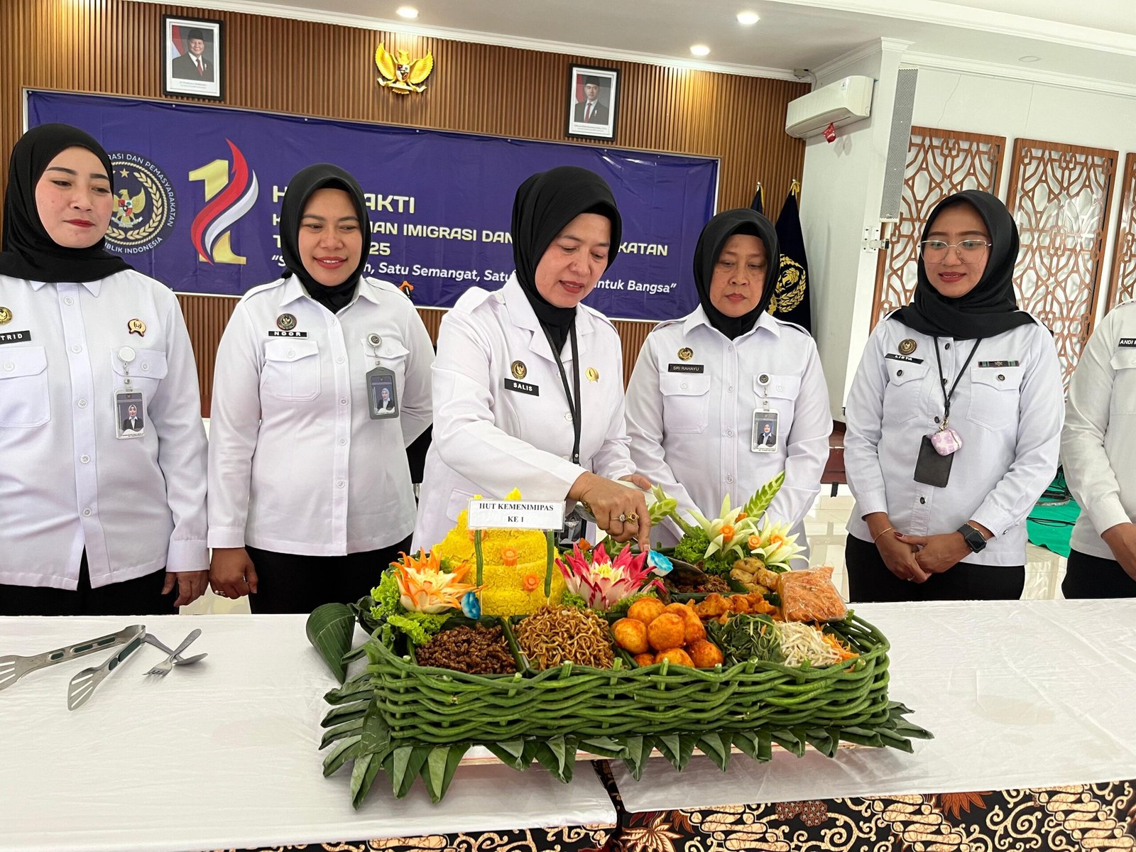 Usai penandatanganan, kegiatan dilanjutkan dengan tasyakuran dan pemotongan tumpeng sebagai wujud rasa syukur atas terbentuknya Kemenimipas dan perjalanan baru yang menyatukan fungsi Imigrasi dan Pemasyarakatan dalam satu struktur kelembagaan.