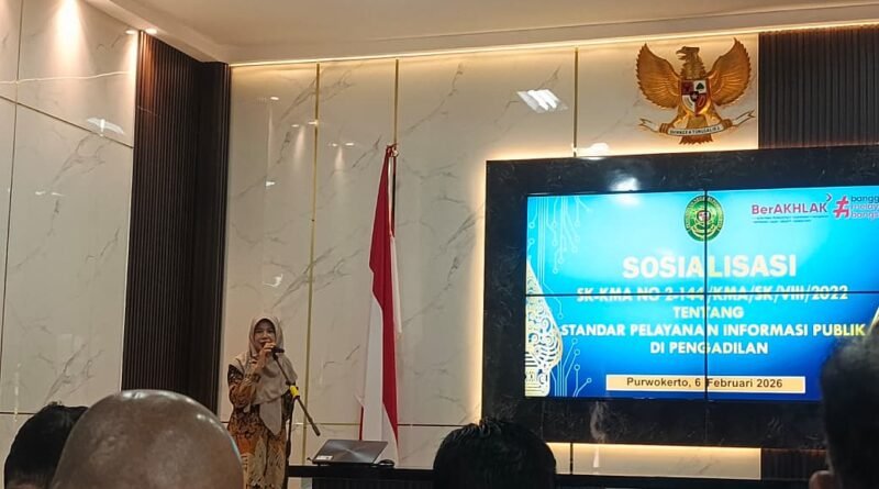 Purwokerto — Lembaga Pemasyarakatan (Lapas) Kelas IIA Purwokerto menghadiri kegiatan sosialisasi Peraturan Mahkamah Agung (PERMA) dan standar pelayanan yang diselenggarakan oleh Pengadilan Negeri Purwokerto, Jumat (06/02/2026). Kegiatan ini berlangsung di Ruang Command Center Pengadilan Negeri Purwokerto mulai pukul 08.15 WIB hingga selesai.