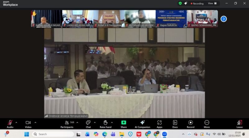 Lembaga Pemasyarakatan (Lapas) Kelas IIA Purwokerto mengikuti kegiatan Focus Group Discussion (FGD) Pedoman Strategi Branding Pemasyarakatan di Media Sosial yang diselenggarakan oleh Direktorat Jenderal Pemasyarakatan pada Rabu, (12/11). Kegiatan tersebut dilaksanakan secara daring melalui aplikasi Zoom Meeting dan diikuti oleh Kepala Lapas Kelas IIA Purwokerto beserta jajaran pejabat struktural serta tim Humas dari ruang rapat Lapas Purwokerto.
