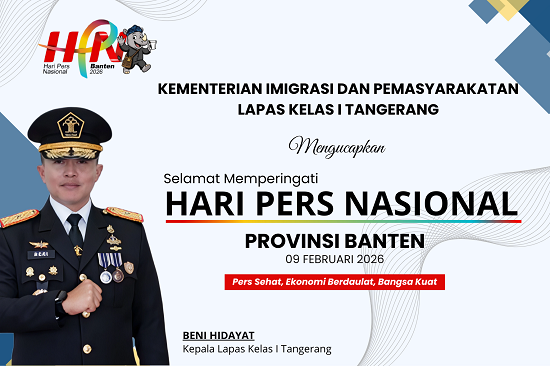 Kepala Lapas Tangerang, Beni Hidayat mengucapkan Selamat memperingati Hari Pers Nasional (HPN) Tahun 2026 yang diselenggarakan di Provinsi Banten sebagai tuan rumah.