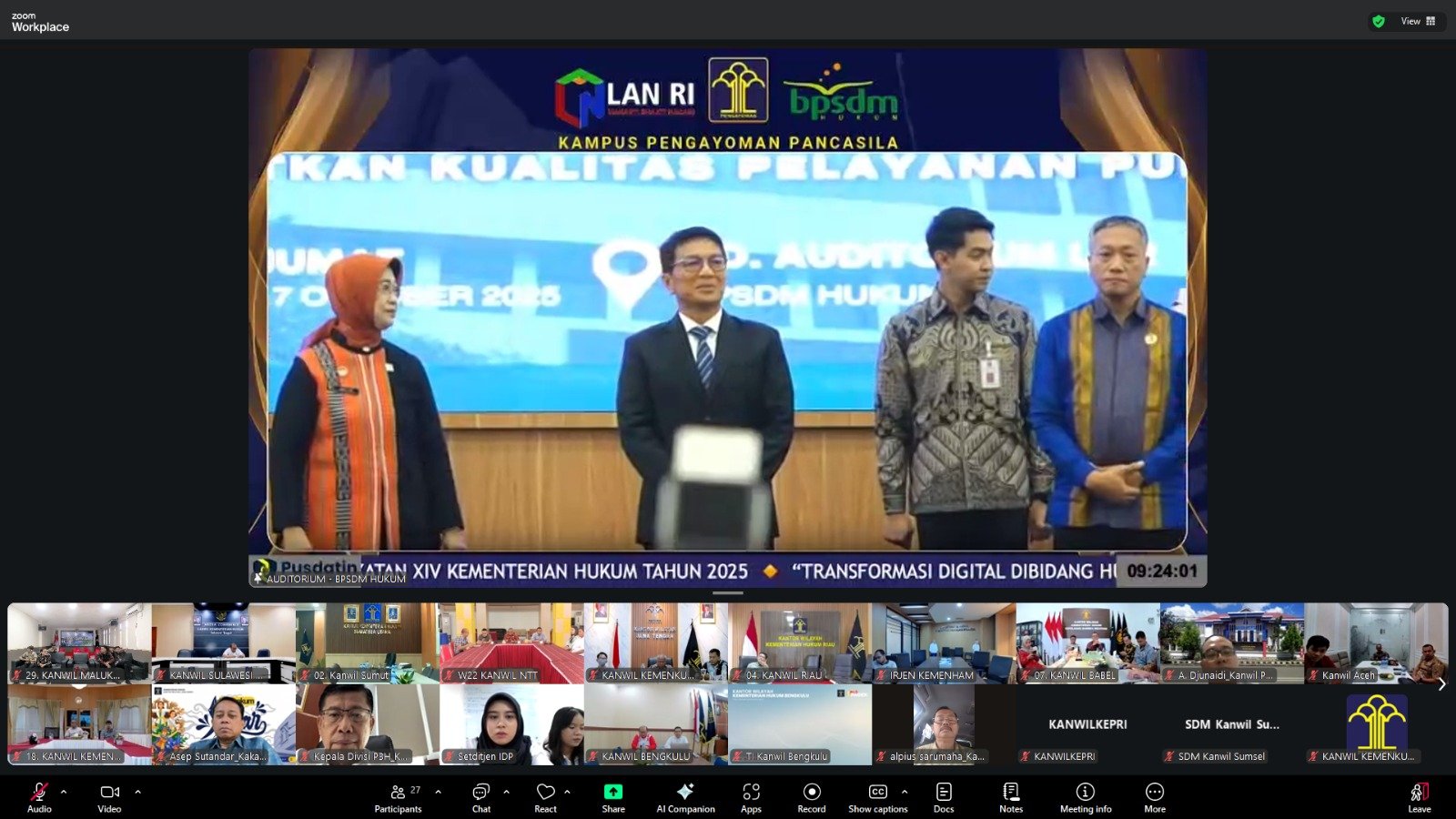 Ternate – Kepala Kantor Wilayah (Kakanwil) Kementerian Hukum (Kemenkum) Maluku Utara (Malut) Budi Argap Situngkir bersama jajaran turut mengikuti kegiatan “Pelepasan Pelatihan Kepemimpinan Nasional (PKN) Tingkat II Angkatan XIV Tahun Anggaran 2025” yang diselenggarakan oleh Badan Pengembangan Sumber Daya Manusia Hukum (BPSDM) Republik Indonesia, secara daring Jum’at (17/10/2025).