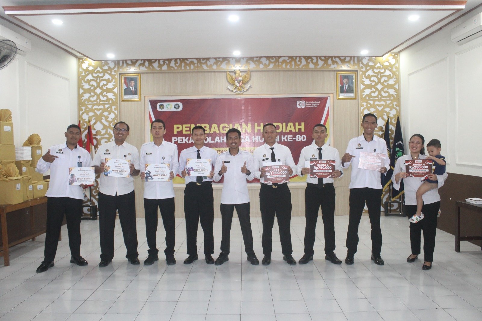 Pasuruan – Dalam rangka memperingati Hari Ulang Tahun Republik Indonesia ke-80, Rumah Tahanan Negara (Rutan) Kelas IIB Bangil menggelar acara pembagian hadiah bagi para pemenang Pekan Olahraga. Kegiatan ini dilaksanakan di dua lokasi, yaitu Aula Utama Rutan untuk pegawai dan Aula Blok Hunian untuk warga binaan, Senin (18/08).