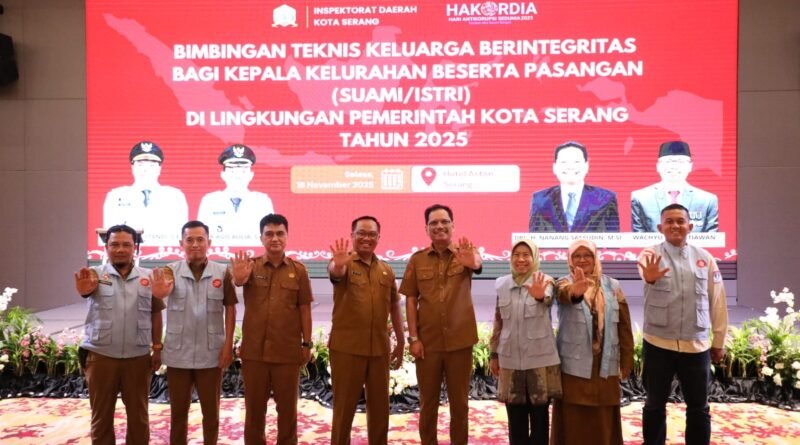 Pemerintah Kota (Pemkot) Serang kembali menegaskan komitmennya dalam membangun aparatur pemerintah yang berintegritas melalui pelaksanaan Bimbingan Teknis (Bimtek) Keluarga Berintegritas, yang digelar bagi seluruh kepala kelurahan beserta pasangan mereka pada Selasa, 18 November 2025.