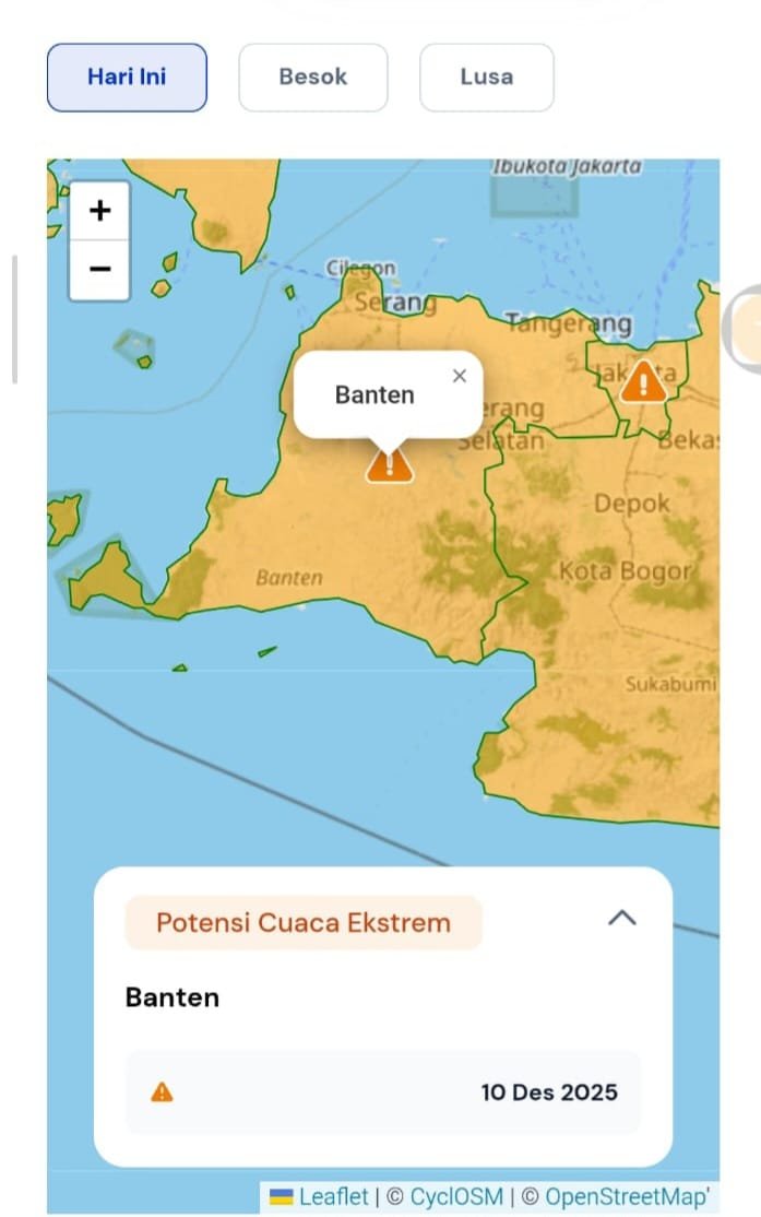 Plt. Kabidhumas Polda Banten AKBP Meryadi menjelaskan bahwa kondisi cuaca hari ini dapat berubah secara cepat sehingga masyarakat perlu memantau informasi resmi dari BMKG maupun instansi terkait.