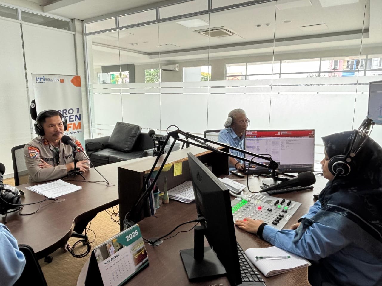 Hadir sebagai narasumber dalam talkshow tersebut, Wadirbinmas Polda Banten, Dr. Zaenudin, S.E., S.H., M.H., dengan penyiar radio Lela Rahma sebagai pembawa acara.