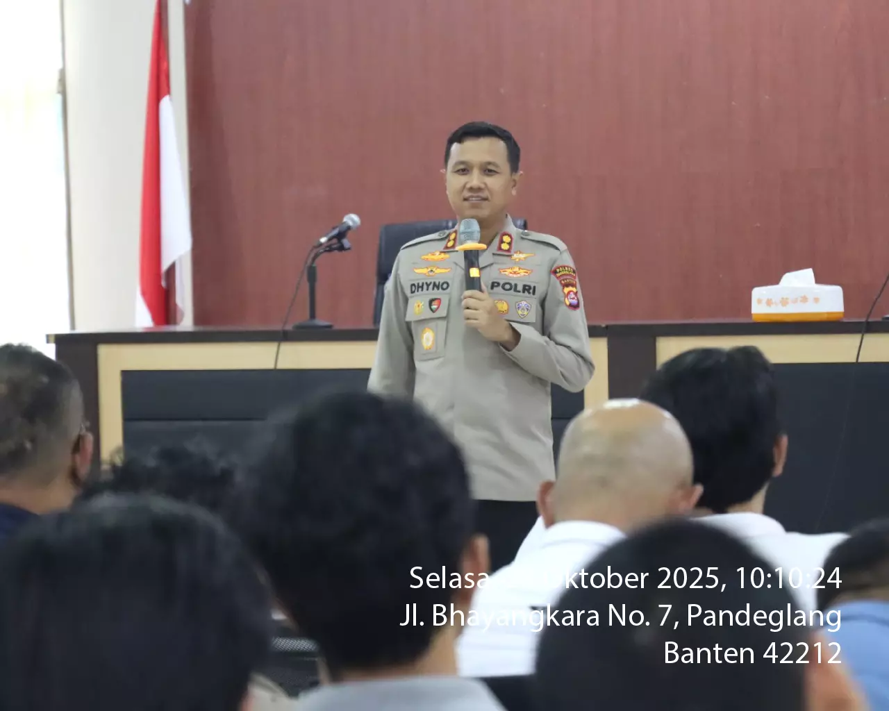 Pandeglang – Kepolisian Resor (Polres) Pandeglang menggelar kegiatan sosialisasi kepada seluruh Personel Non Penegak Prosedur (PNPP) tentang pentingnya menjauhi perilaku hidup hedonis dan menjaga integritas sebagai anggota Polri, bertempat di Aula Polres Pandeglang, Selasa (28/10/2025).