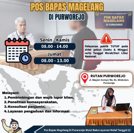 Pos Bapas Magelang kini hadir di Rutan Purworejo. Kami hadir lebih dekat dan lebih bermanfaat