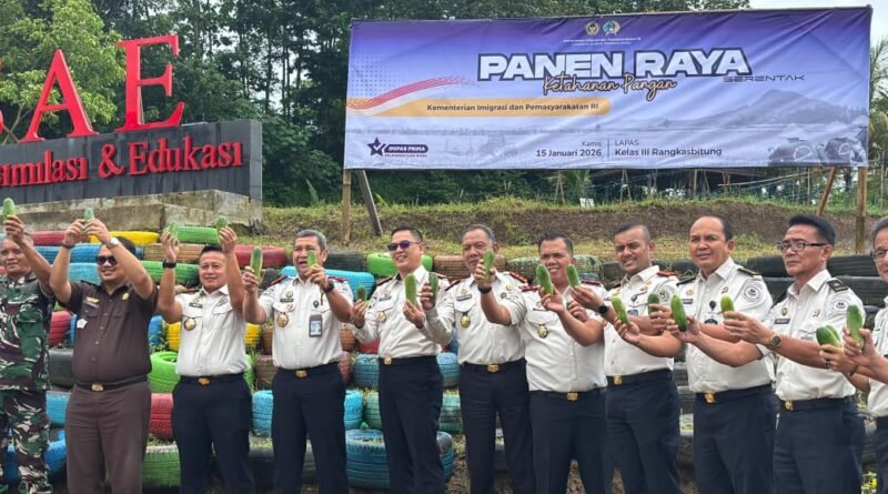 KORANDETAK.COM-Rumah Tahanan Negara (Rutan) Kelas IIB Serang turut berpartisipasi dalam kegiatan Panen Raya Ketahanan Pangan yang dilaksanakan secara serentak di seluruh Indonesia oleh Kementerian Imigrasi dan Pemasyarakatan, Kamis (15/01/2026).