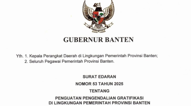 Ketentuan ini sudah diatur dalam Surat Edaran Nomor 53 Tahun 2025 tentang Penguatan Pengendalian Gratifikasi di lingkungan Pemerintah Provinsi Banten.