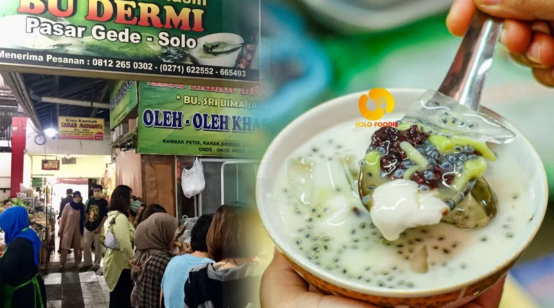 Yap, Es Dawet Telasih Bu Dermi merupakan salah satu hidden gem di Kota Solo yang selalu dipenuhi pengunjung dengan rasa penasaran tinggi untuk mencicipi kesegaran es dawet di tengah pasar ini. Seporsi es dawet berisikan cendol, bubur sumsum, ketan hitam, tape, dan biji selasih yang disiram dengan kuah santan. Saat diaduk, kita akan merasakan rasa gurih, manis, dan segar dalam setiap suapan.