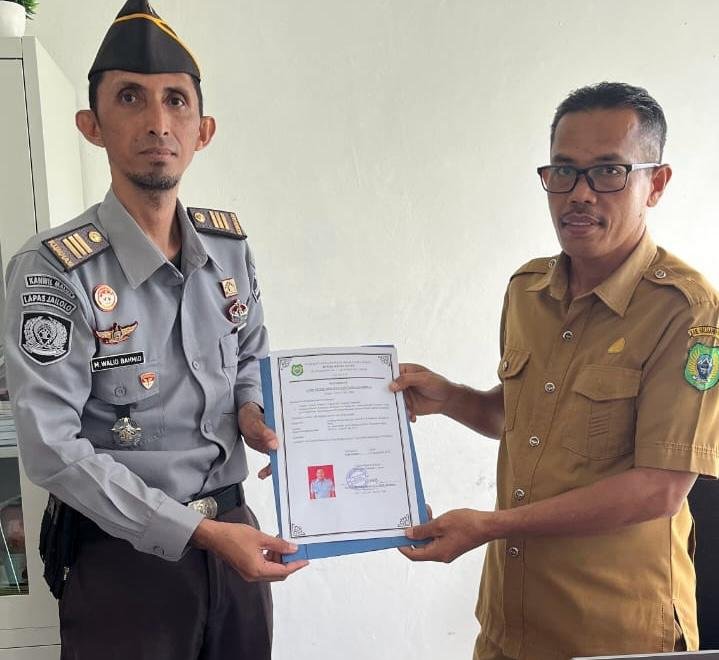 Jailolo – Lembaga Pemasyarakatan (Lapas) Kelas IIB Jailolo, salah satu Unit Pelaksana Teknis (UPT) Pemasyarakatan Kanwil Kemenkumham Malut menerima sertifikat Laik Hygiene dari Dinas Kesehatan Kabupaten Halmahera Barat, Selasa (1/10).