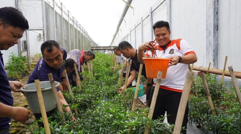 Purwokerto – Lembaga Pemasyarakatan Kelas IIA Purwokerto kembali menunjukkan komitmennya dalam mendukung program ketahanan pangan melalui pembinaan kemandirian bagi Warga Binaan. Pada Sabtu (22/11/2025), jajaran pejabat struktural Lapas didampingi Dosen Fakultas Biologi Universitas Jenderal Soedirman, Dr. Juni Safitri Muljowati, S.Si., M.P., melaksanakan panen cabai hasil budidaya Warga binaan yang ditanam di area SAE brandgang selatan Lapas.