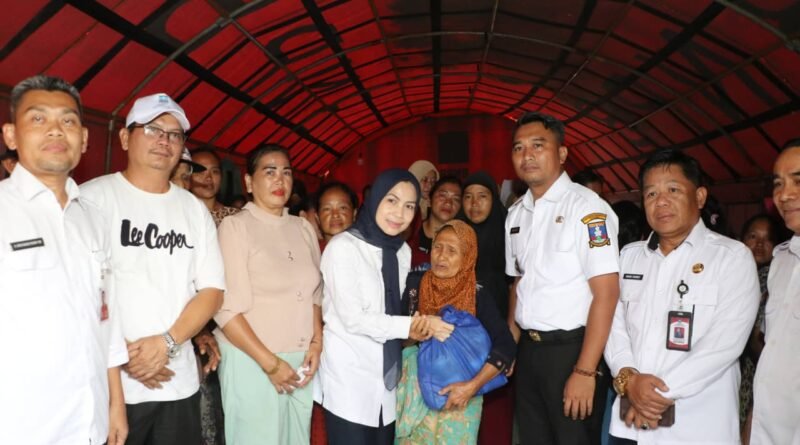 Ratu Zakiyah langsung menuju tenda pengungsian menyapa serta menyalami warga, dan berbincang menanyakan kondisi kesehatan dan ketersediaan makanan kepada warga yang didominasi para kaum ibu. Ia pun memberikan semangat kepada warga agar bersabar terhadap ujian bencana banjir, dan disertai dengan memberikan bantuan sembako.