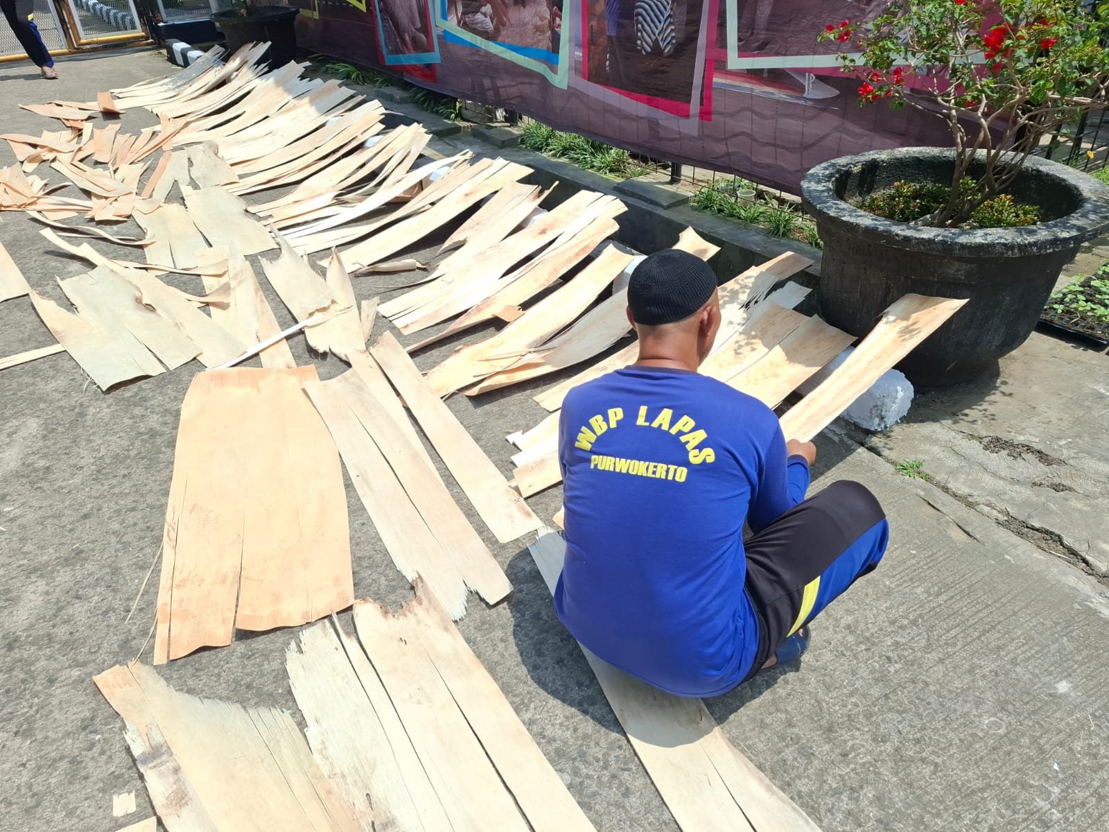 Warga Binaan Lapas Purwokerto Lakukan Penjemuran Bahan Stik untuk Kerajinan Tangan