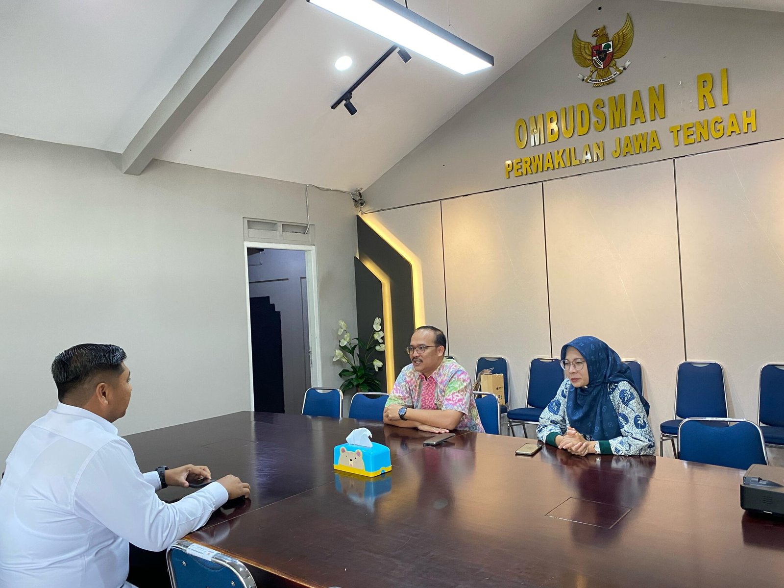 Penjajakan ini disambut langsung oleh Kepala Pencegahan Maladministrasi Ombudsman RI perwakilan Jateng, Sabarudin Hulu. Dalam kesempatan ini kedua belah pihak membahas terkait potensi kolaborasi dalam pemantauan dan evaluasi layanan, pelatihan peningkatan kapasitas petugas, serta penyusunan standar pelayanan sesuai dengan prinsip-prinsip good governance.